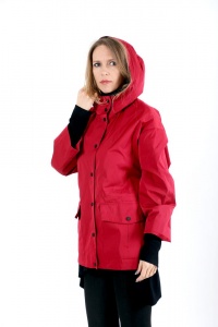 Плащ-куртка прямого силуэта с центральной застежкой на 8 кнопок (2 на капюшоне).