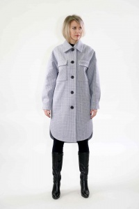 Пальто рубашечного типа, свободного кроя, прямого силуэта.