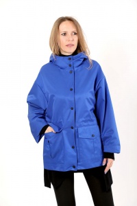 Плащ-куртка прямого силуэта с центральной застежкой на 8 кнопок (2 на капюшоне).